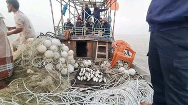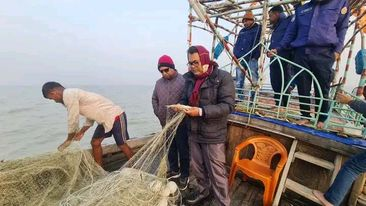 ভোলার লালৃোহন উপজেলার বিভিন্ন পয়েন্টে লালমোহনের মৎস্য অফিস কর্তৃক মেঘনা নদীতে অবৈধ জাল উচ্ছেদ করার লক্ষে পরিচালিত অভিযানে অংশ নিয়ে বিশেষ কম্বিং অপারেশনে অদ্য ১৭-জানুয়ারী-২০২৪ খ্রিঃ দুপুর ৩.০০ ঘটিকা থেকে রাত ৯.০০ ঘটিকা অবধি উপজেলা মৎস্য কর্মকর্তার কার্যালয়, লালমোহন এবং থানা পুলিশের সহায়তায় মেঘনা নদীতে অভিযান পরিচালনা করা হয়।